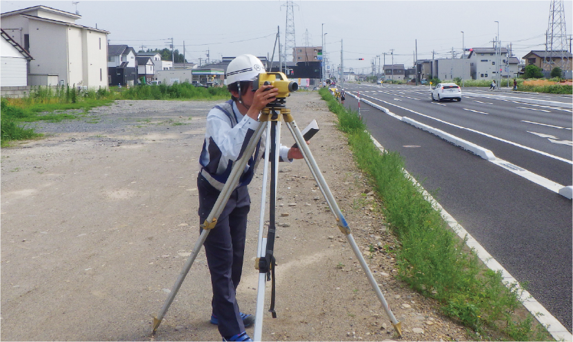 道路をストレスなく通行できるように、渋滞緩和のための道路新設工事、既存道路の拡幅工事などから、河川環境の整備・保全、水害の防止をするための河川工事など様々な工事をいたします。近年ではICT技術を活用したi-Constructionを積極的に取り入れ、より早く正確な状況把握が可能になりました。工事後、末永く気持ちよく使用していただけるよう、愛ロード・愛リバー活動に参画するなど清掃活動なども行います。